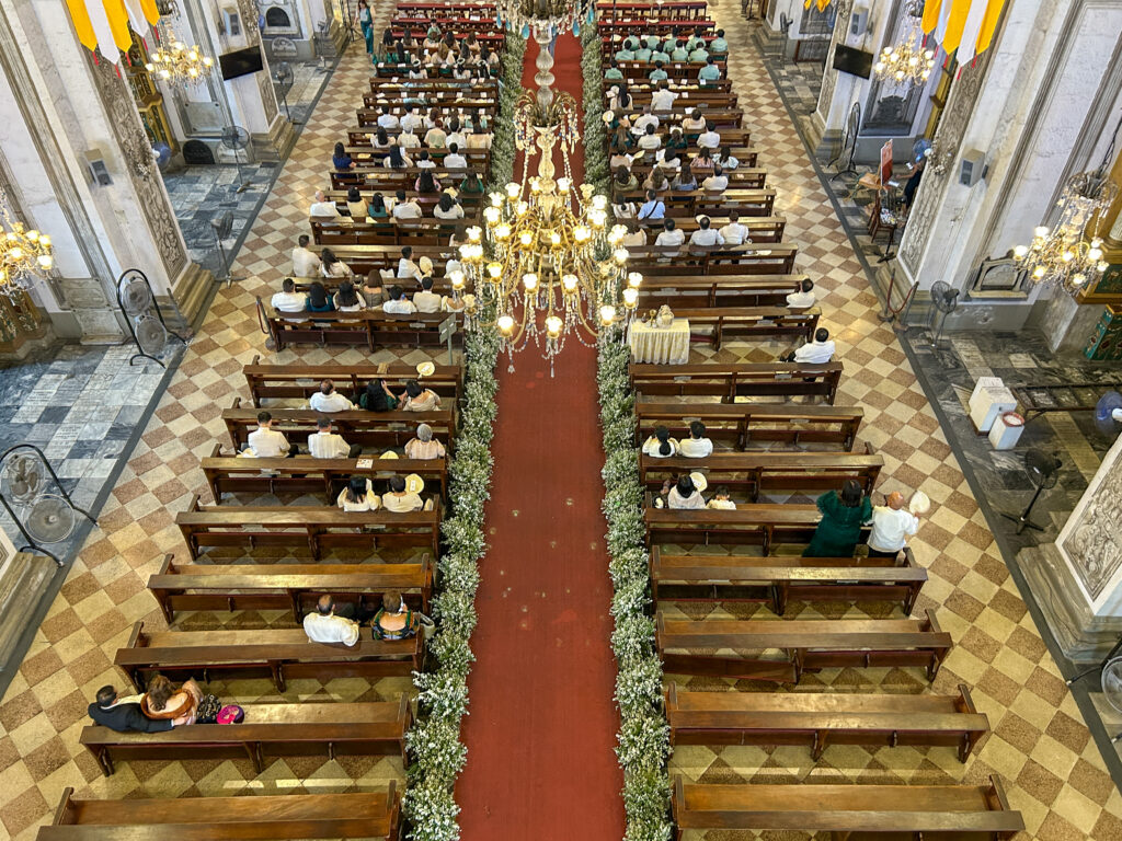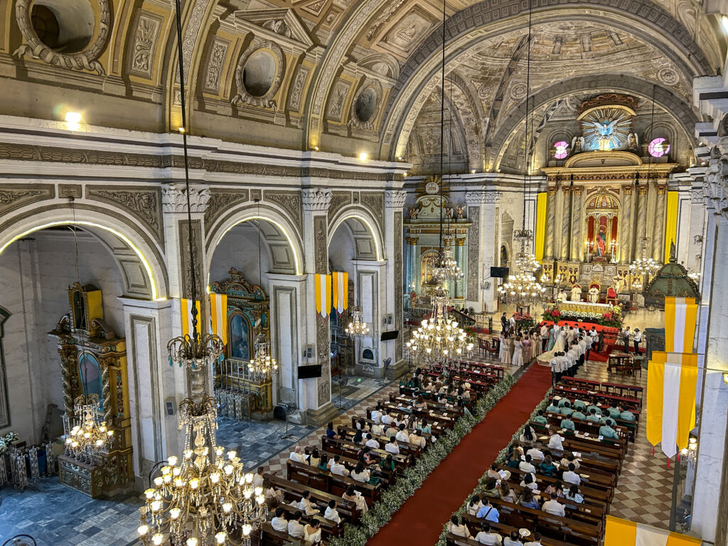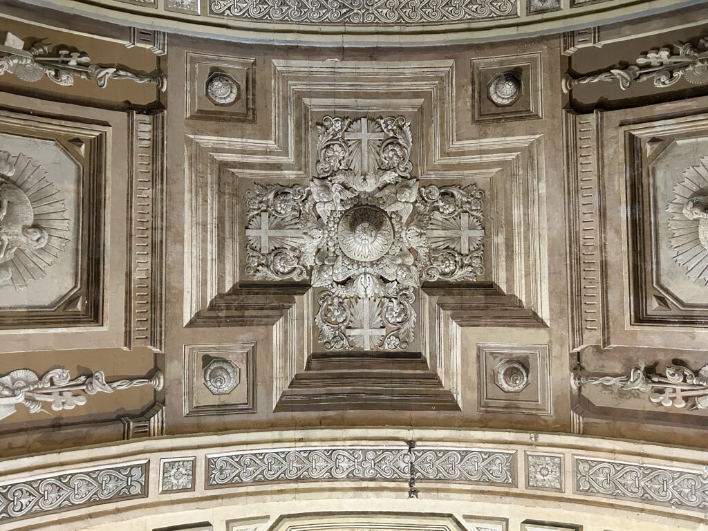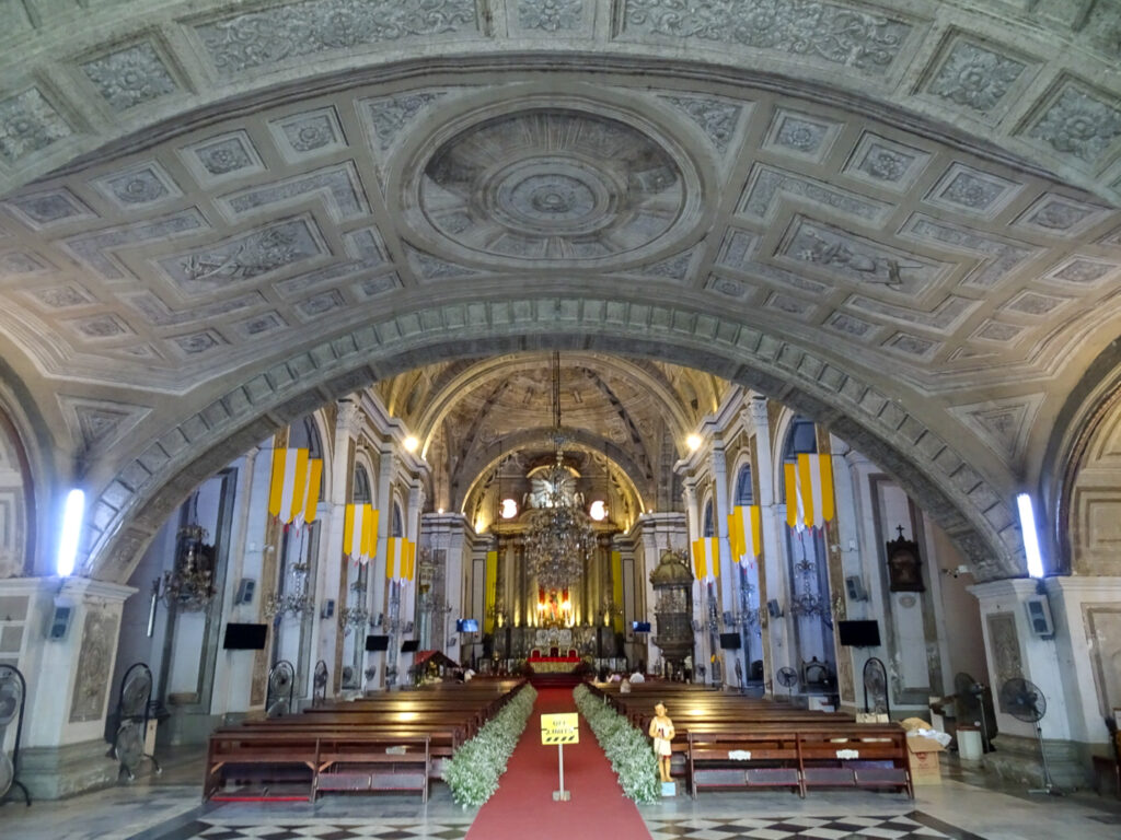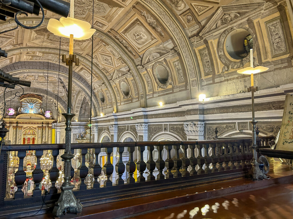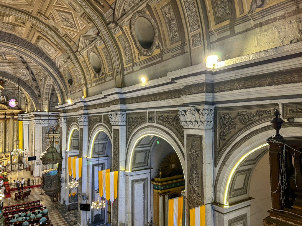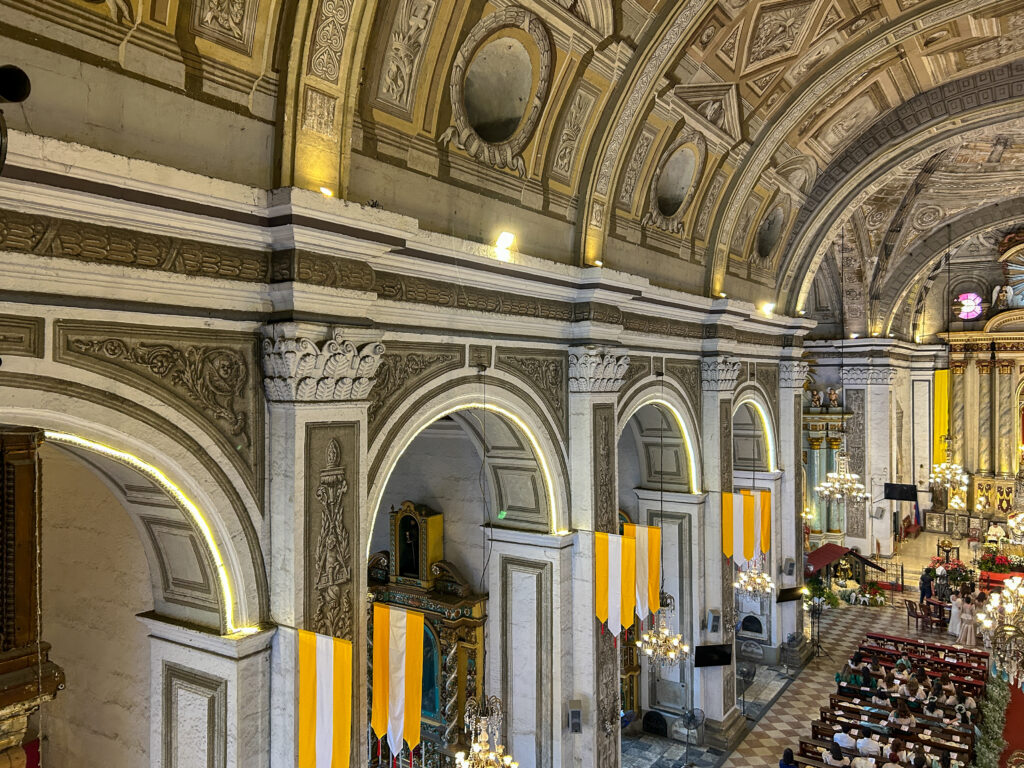 聖堂内の天井は、金色の絵画が描かれており、19世紀にフランスで制作されたクリスタルのシャンデリアが飾られています。